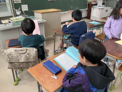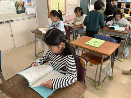 国語「お話のさくしゃになろう」では、一人一人お話を作りました。登場人物の設定から考え、お話の流れを考えて作成しました。完成したお話は友達と読み合い、楽しみました。