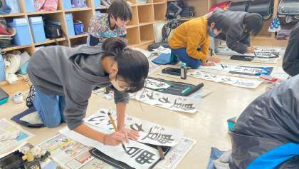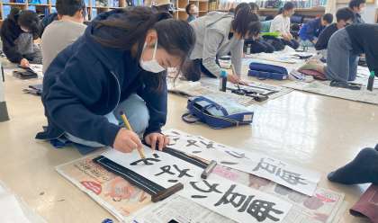1月の席書会に向けて、『豊かな心』の練習に取り組んでいます。ポイントを意識しながら、集中して書いていました。