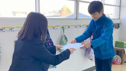 担任から児童一人一人に、その子のよさや2学期に努力したこと、力をつけたこと等について、お話しながら通知表を渡していきました。子どもたちの緊張した顔や笑顔が印象的でした。写真は2年生、5年生、6年生の様子です。
