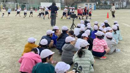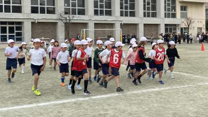 曇り空でとても気温が低い日でしたが、子どもたちは、保護者の温かい応援に励まされ、校庭8周を走り切りました。