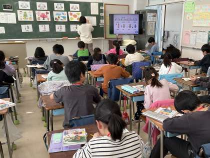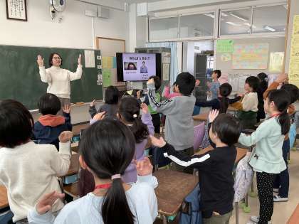 授業の始まりはいつも「ハローソング」を歌って踊ります。