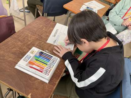 カードに好きな季節を書き、友達に伝える活動をしました。
