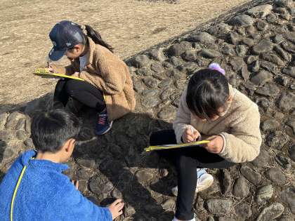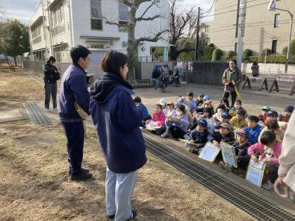 今回の公園探検では、世田谷区公園緑地課の方に、事前に用意した公園について聞きたいことを質問しました。また、最後の公園探検ということで、公園の中を見回り、見つけたことを記録に取りました。