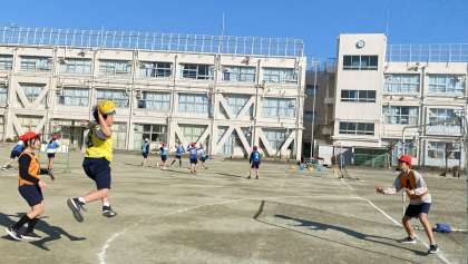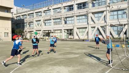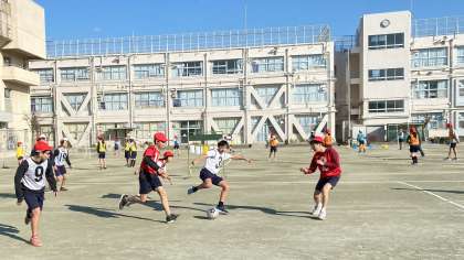 「シュートにつながる連係プレー」で得点できるように、チームごとに作戦を立てて練習しました。ゲームでは、作戦通りに意図的なプレーで得点することができたチームもありました。振り返りでは、次時の学習につながる記述がたくさんありました。