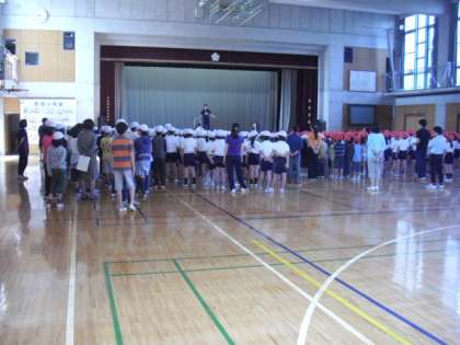 今日の音楽朝会で、「運動会の応援」の歌の練習が行われました。いよいよ26日に向けて、動き出しました。
