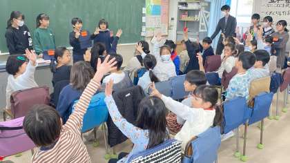 5年生は、「地球を救うわたしたち」というテーマで1年間学習をしてきました。数十年後の地球の未来を予想し、課題を解決するために自分たちにできることを考えました。「一人の動きが地球を守る みんなが当たり前に笑える世の中を」をスローガンに様々な取組をしました。各教室で保護者の皆様や1年生〜6年生に向けて、学習の成果を発表しました。