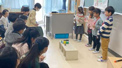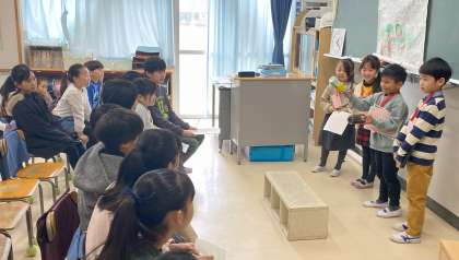 「もうすぐみんな2ねんせい」の学習を通して、学んだ成果を上級生に向けて発表しました。玉堤小学校の魅力や楽しい学校生活について、緊張しながら一生懸命伝えていました。発表を聞いた上級生は、感想を述べたり発表についてのアドバイスをしたりしていました。