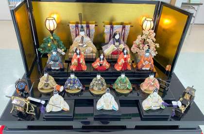 地域の方からご寄贈いただいた「ひな人形」を、毎年この時期に図書館前に飾っています。子どもたちは季節の行事を楽しんでいます。