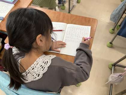 「どんなしきになるかな」の学習をしています。問題を解決するために、問題の文章から情報を読み取り、整理しながら図に表して考えることができました。