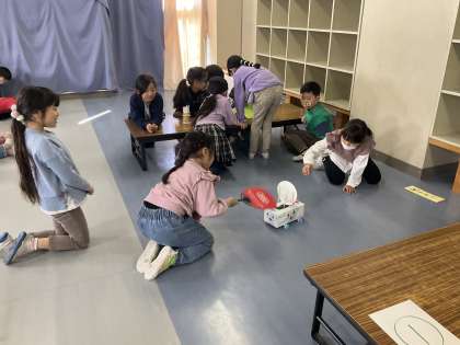 一年生に遊び方や楽しみ方を説明しながら、一緒に遊んで楽しみました。