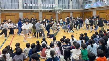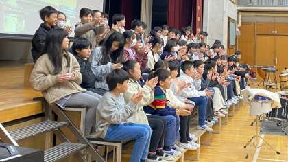 卒業する6年生と最高学年を引き継ぐ5年生の最後の真剣勝負!色カードめくりゲームをした後は、6年生への御礼のメッセージを「ビリーブ」の歌に乗せて、感謝の思いを込めて伝えました。