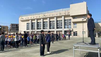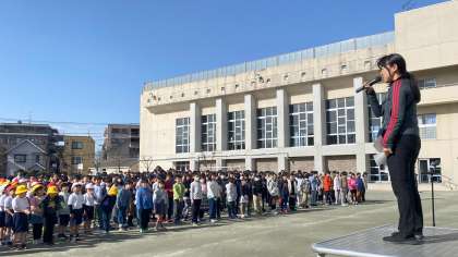 今日が今年度最後の全校朝会になります。修了式まであと4日、卒業式まであと5日です。校長は、「終わり良ければすべて良し」についてお話し、今年度最後の日々を大切に過ごすように声をかけました。環境美化委員会の児童は、「落とし物」について連絡しました。看護当番の教員は、今週の目標「荷物を計画的に持ち帰ろう」についてお話しました。
