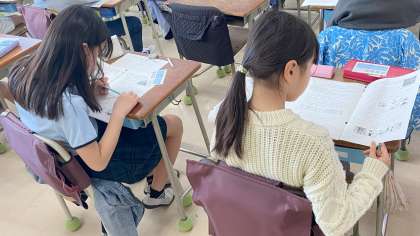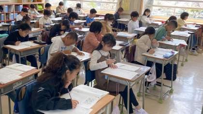 4、5、6年生児童を対象に、国語、算数、理科、社会の学力調査を実施しました。子どもたちは集中して粘り強く取り組んでいました。