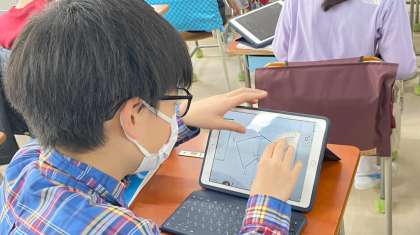 「対称な図形」について学習を進めています。今日は、線対称な図形について、調べたり説明したりしました。