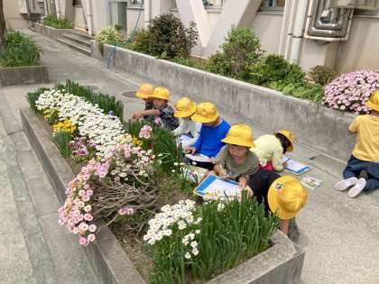 季節を楽しもう(1)「春」の学習では、身近な春を探しました。見つけた春を絵で記録をしました。