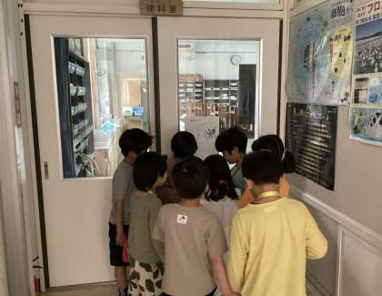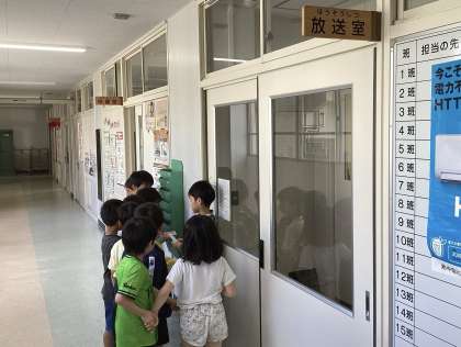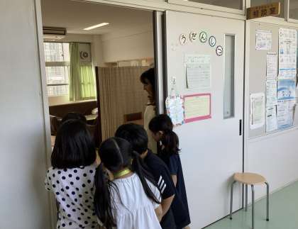 学校探検では,各場所にいる2年生が,何をする部屋なのかを1年生に向けて分かりやすく説明をしました。説明を聞いた1年生は,2年生からシールをもらい,たくさんのシールを集めて楽しみました。