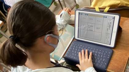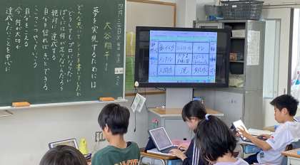 大谷選手の活躍、行動を題材にした教材「夢を実現するためには」を読み、考えました。大谷選手が実際に高校時代に書いた『目標達成シート』を参考にして、5年生の目標を立てました。5年生の目標を中央に書き、その周りの8ますに目標を達成するために必要な行動で埋めていきました。