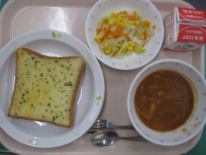 ガーリックトースト 牛乳 コーンサラダ ポークシチュー