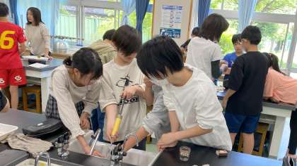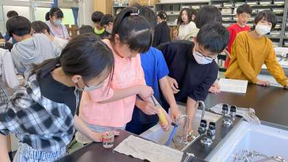 「ものの燃え方と空気」について、学習を進めています。ろうそくが燃える前と燃えた後の空気には、どのような違いがあるいか、予想を立てて実験しました。気体検知管で酸素と二酸化炭素の割合を調べました。