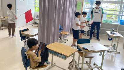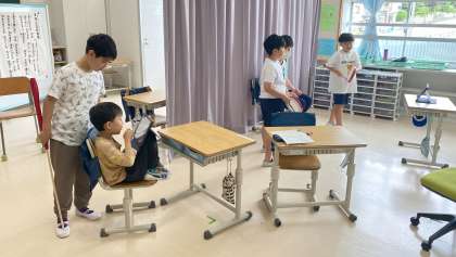 3学年同時に、それぞれの演技の練習をしました。映像を見ながら真剣に取り組んでいました。