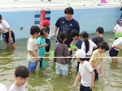 理科の学習で、チョウのたまごが成虫になるまでを追究しています。今日は、トンボも成虫になるために、同じ過程をたどるのかプールのヤゴとって教室で観察していきます。(5月23日)
