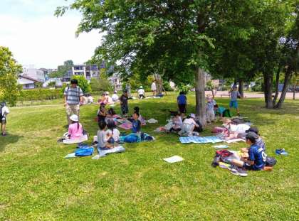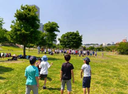 後半は、お弁当を食べて、クラスで考えた遊び(こおりおに、だるまさんの一日、ドロケイ)で学年全体で遊びました。