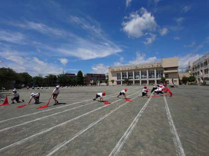 土曜日に本番を迎える運動会に向けて、心を一つに練習に取り組んでいます。(5月29日)