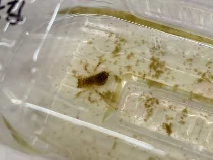 プールにいたヤゴを教室で観察しています。脱皮を初めたヤゴは、一回り大きくなっていました。(5月30日)