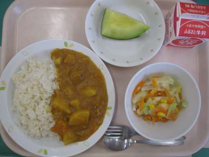 ポークカレーライス 牛乳 コーンサラダ くだもの(メロン)