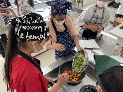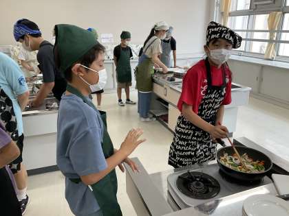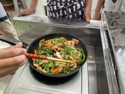 野菜の切り方を工夫してカラフルな野菜炒めを作ることができました。