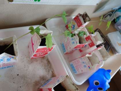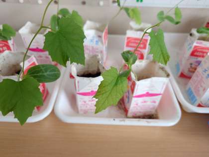 教室で観察しているヘチマがぐんぐん伸びてきています。(6月10日)