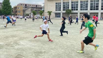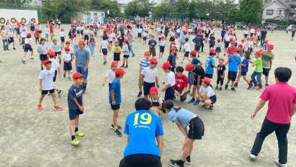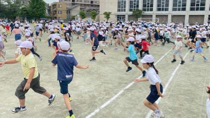 今週の目標「外に出て体を動かそう」を達成するために、全校で鬼ごっこ選手権を開催しました。1回戦目の鬼は、教員です。短時間でもたくさん体を動かすことができました。2回戦、3回戦目は6年生が鬼を担当し、盛り上げていました。