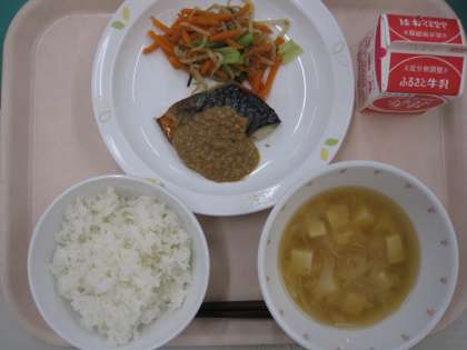 ごはん 牛乳 魚のごまだれがけ 野菜のおかか和え じゃがいものみそ汁
