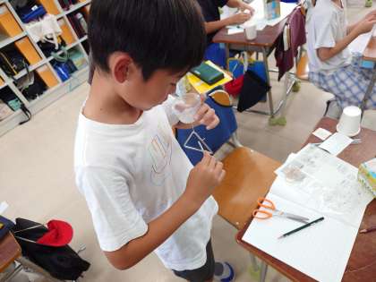 音が出ているとき、共通している性質をしらべました。音が出ているときの様子を、手応えではなく目で確かめていました。(6月17日)