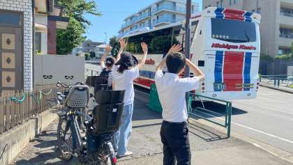がわせみ学級の4年生、5年生が他校の子どもたちと一緒に河口湖へ2泊3日の移動教室に出かけました。出発式を立派に行い、元気に出発しました。