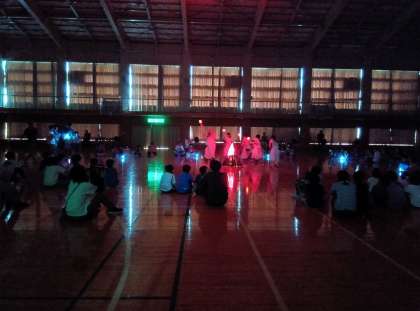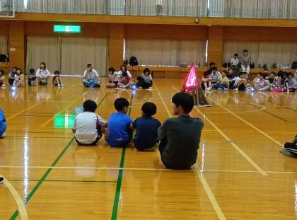 キャンドルファイヤーを行いました。司会から玉堤小学校さーんと呼ばれると3人しかいませんが全員ではーいと大きな声でこたえることができました。その後、夕食でカレーライスをいただきました。3人とも元気です!