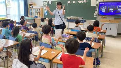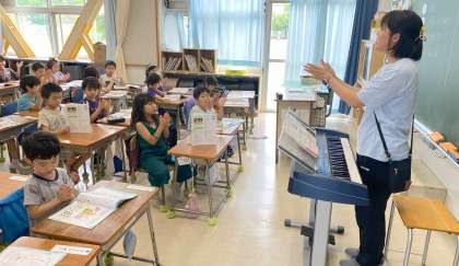 音楽に合わせてリズムを打ちながら、「かたつむり」の歌を聴いたり歌ったりしました。