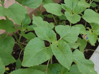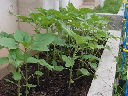 最近の雨と温かさにより、ヒマワリが成長してきました。(6月21日)