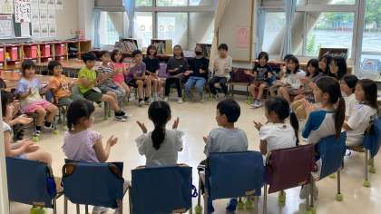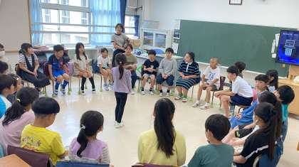 なかよし班、第1回目の活動を行いました。異学年交流のスタートです。6年生が中心となり会を進めていました。ゲームを楽しみながら、自己紹介をしました。