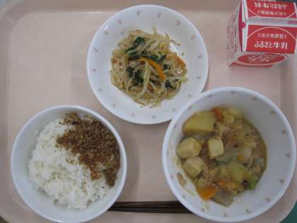 ごはん かみかみつくだ煮 牛乳 ごま和え 五目うま煮
