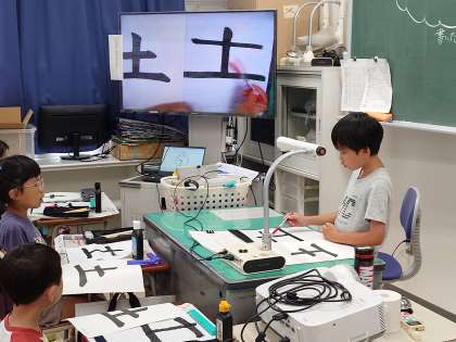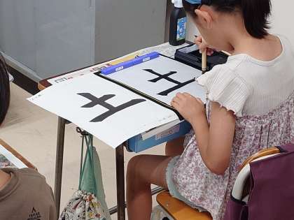 今日は、「土」を書きました。三角形をイメージしてバランスよく書く練習をしました。(7月9日)
