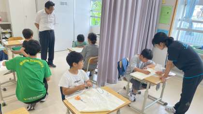 「スエーデン刺繍に取り組もう」の学習をしています。自分でめあてを決め、集中して取り組んでいました。授業終了のチャイムが鳴ったとき、子どもたちは「もっとやりたい!もっとやりたい」と言っていました。