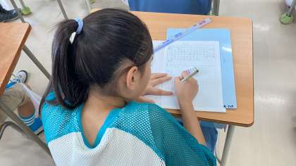 「考える力をのばそう〜違いに着目して〜」の学習を進めています。2つの量の違いに着目して、線分図に表してから式を立てました。いくつかの考え方を全体で共有し、理解を深めました。