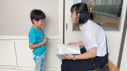 担任から児童一人一人に、その子のよさや1学期に努力したこと、力をつけたこと等について、お話しながら通知表を渡していきました。子どもたちの緊張した顔や笑顔が印象的でした。写真は1年生、2年生、3年生の様子です。
