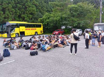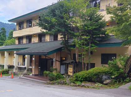 宿泊場所、風和里に到着しました。入り口に鹿の剥製、ロビー奥には家康公の甲冑レプリカがありました。2泊、お世話になります。