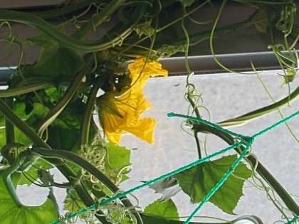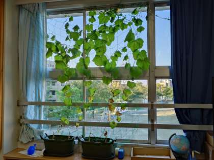 教室で育てているヘチマも天井までのびています。(8月12日)