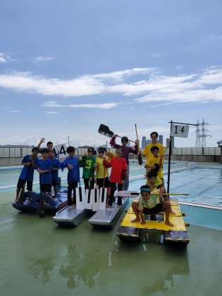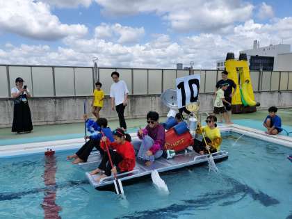 しかし、昨日の雨の影響で中止となり、参加予定の子どもたちは学校のプールで記念写真を撮りました。