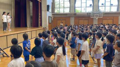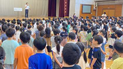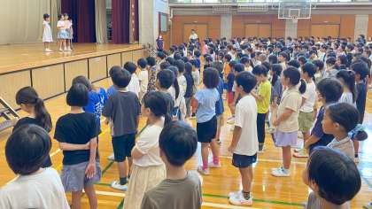 2学期がスタートしました。学校長からは、夏休みの生活やパリオリンピック・パラリンピックでのエピソードについてお話がありました。児童代表の言葉は3年生が担当し、夏休みに努力したことや2学期の目標などについて発表しました。緊張しながらも、落ち着いて立派に述べることができました。放送委員の子どもたちは、お昼の放送に向けての活動について伝えていました。