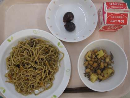 ソース焼きそば 牛乳 大豆と小魚の変わり揚げ くだもの(きょほう)