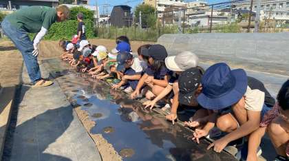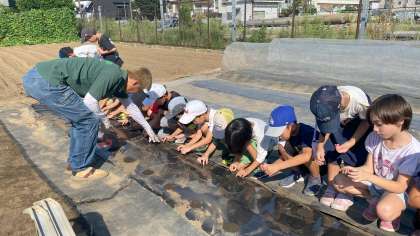 農家の方からお話を聞いた直後に畑に行き、大根の種をまきました。10月に間引きをして、11月下旬頃、収穫する予定です。